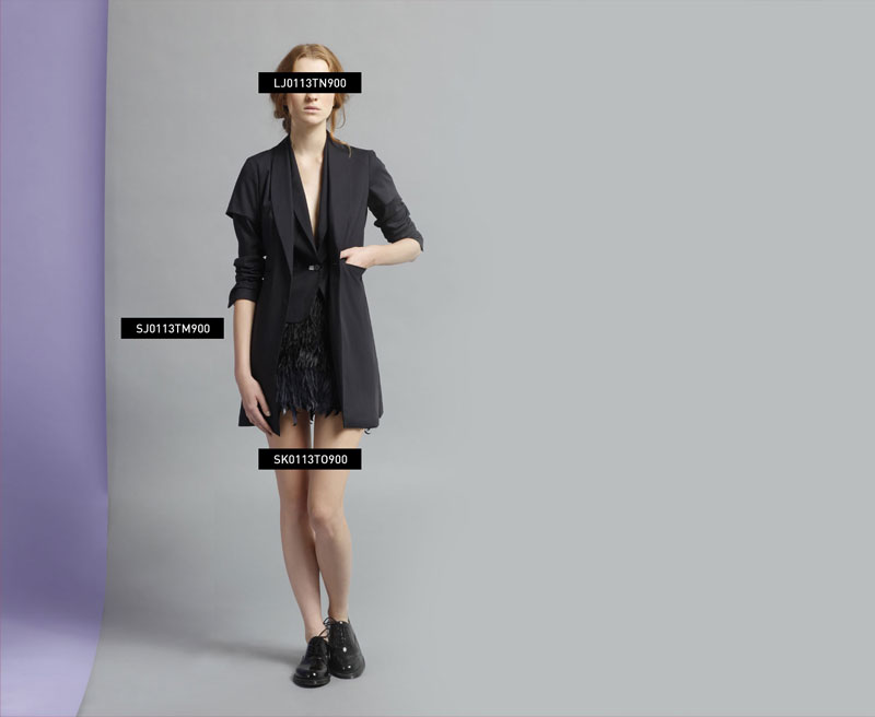 SHORT JACKET: SJ0113TM900 LONG JACKET: LJ0113TN900 PLUME SKIRT: SK0113TO900 |