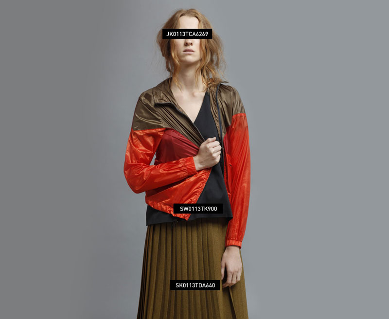 RAIN JACKET: JK0113TCA6269 SWEATER: SW0113TK900 PLEATED SKIRT: SK0113TDA640 |