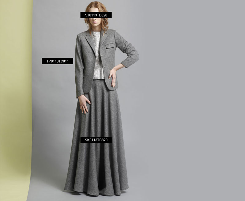 JACKET: SJ0113TB820 LONG SKIRT: SK0113TB820 SILVER TOP: TP0113TC811 |